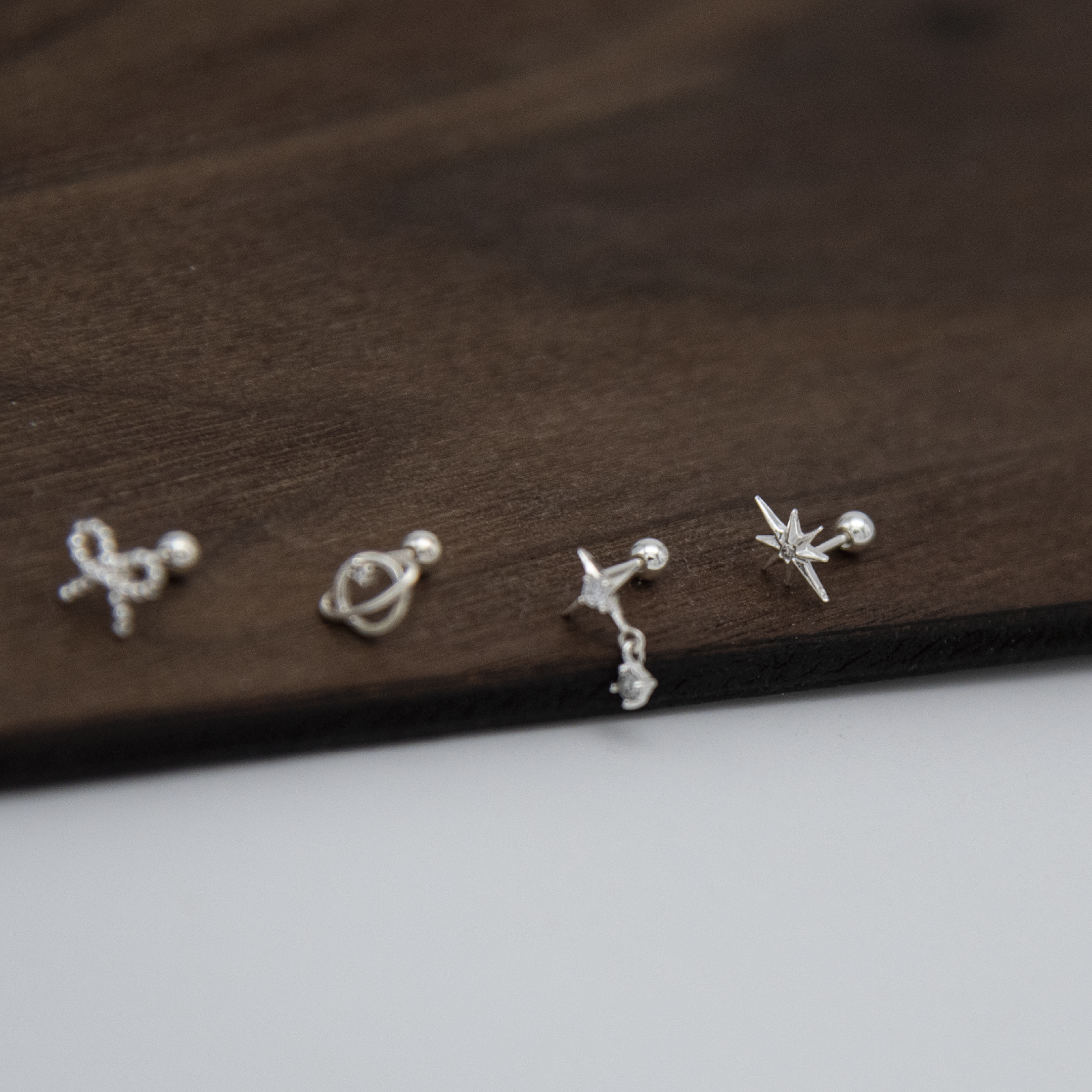 指引星・鎖珠純銀耳環 (DES10259)