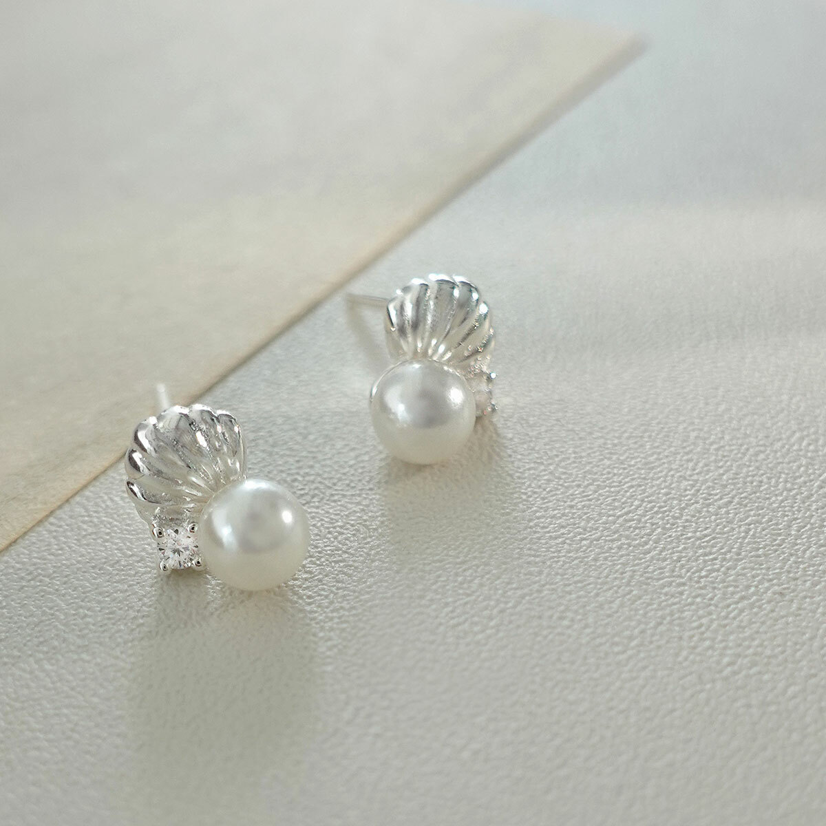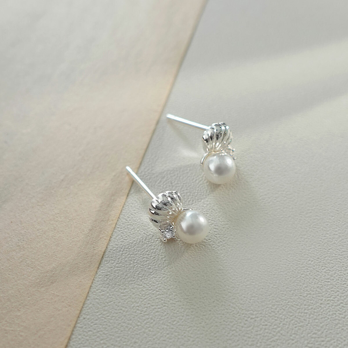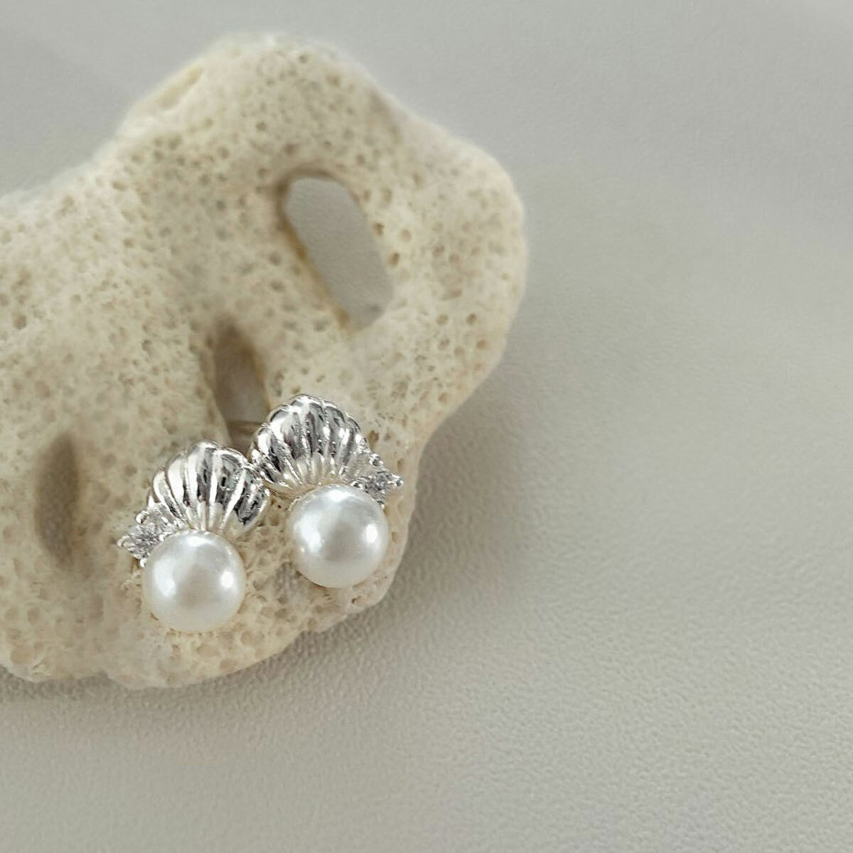 海島貝殼・珍珠純銀耳環 (DES10353)