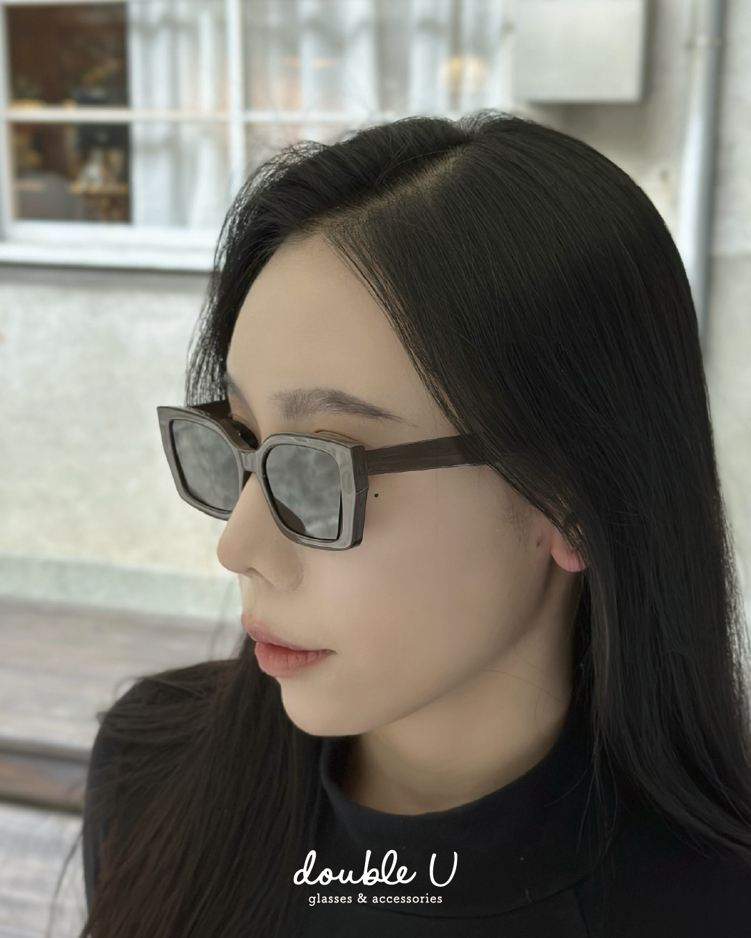 貓眼感鏤空膠框方形墨鏡