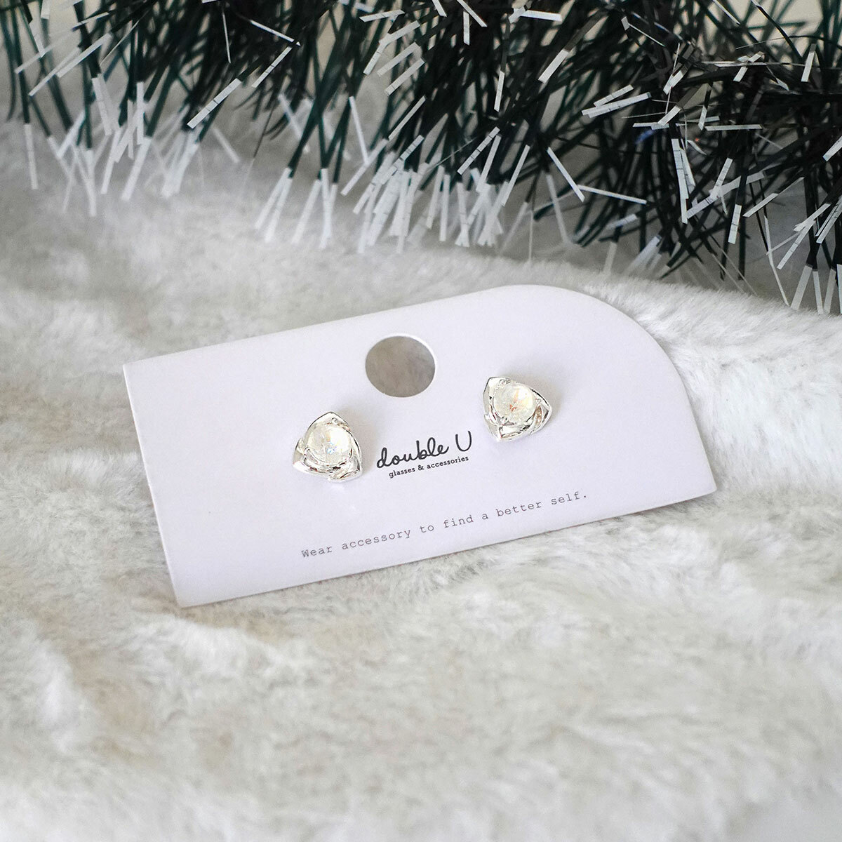 三角花瓣・小鑽銀針耳環 (EEN10424)