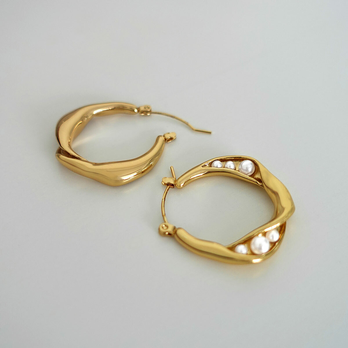 豌豆珍珠・鋼飾耳環 (FEX10453)
