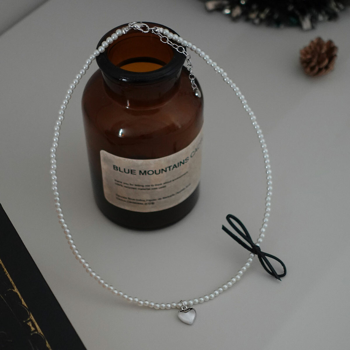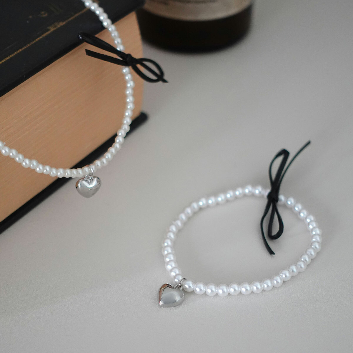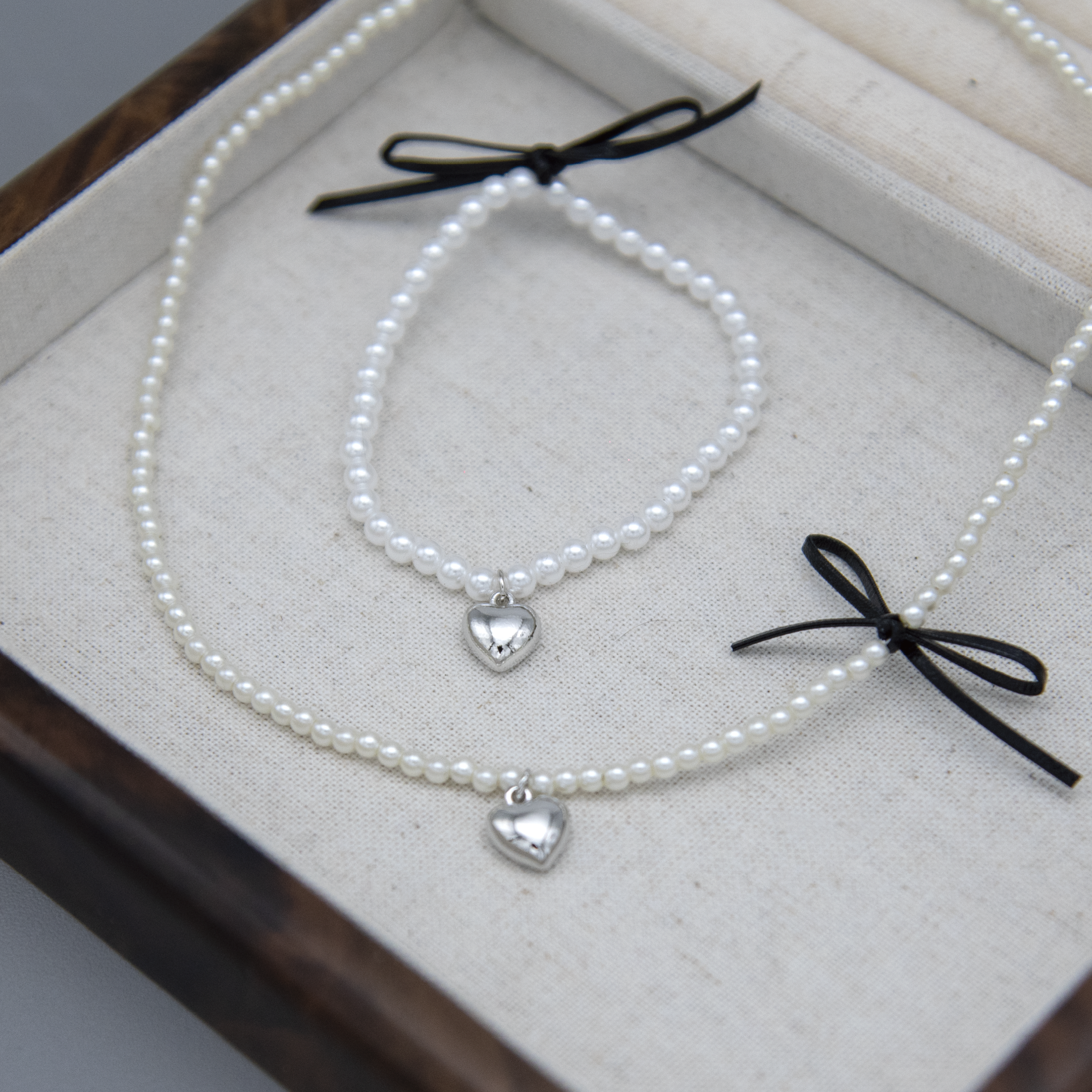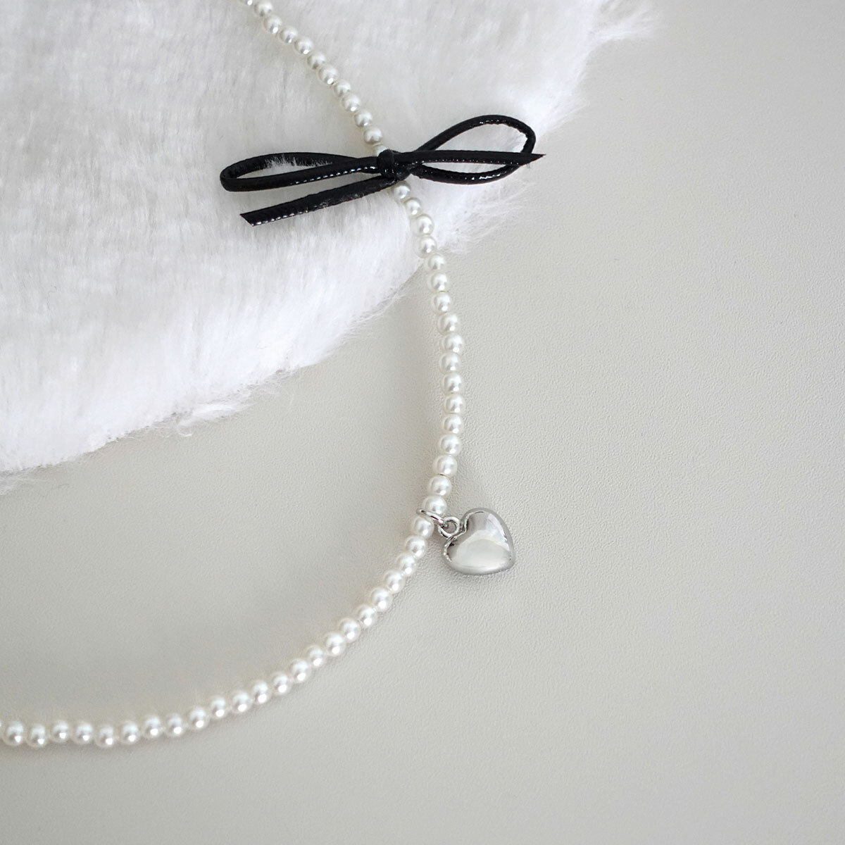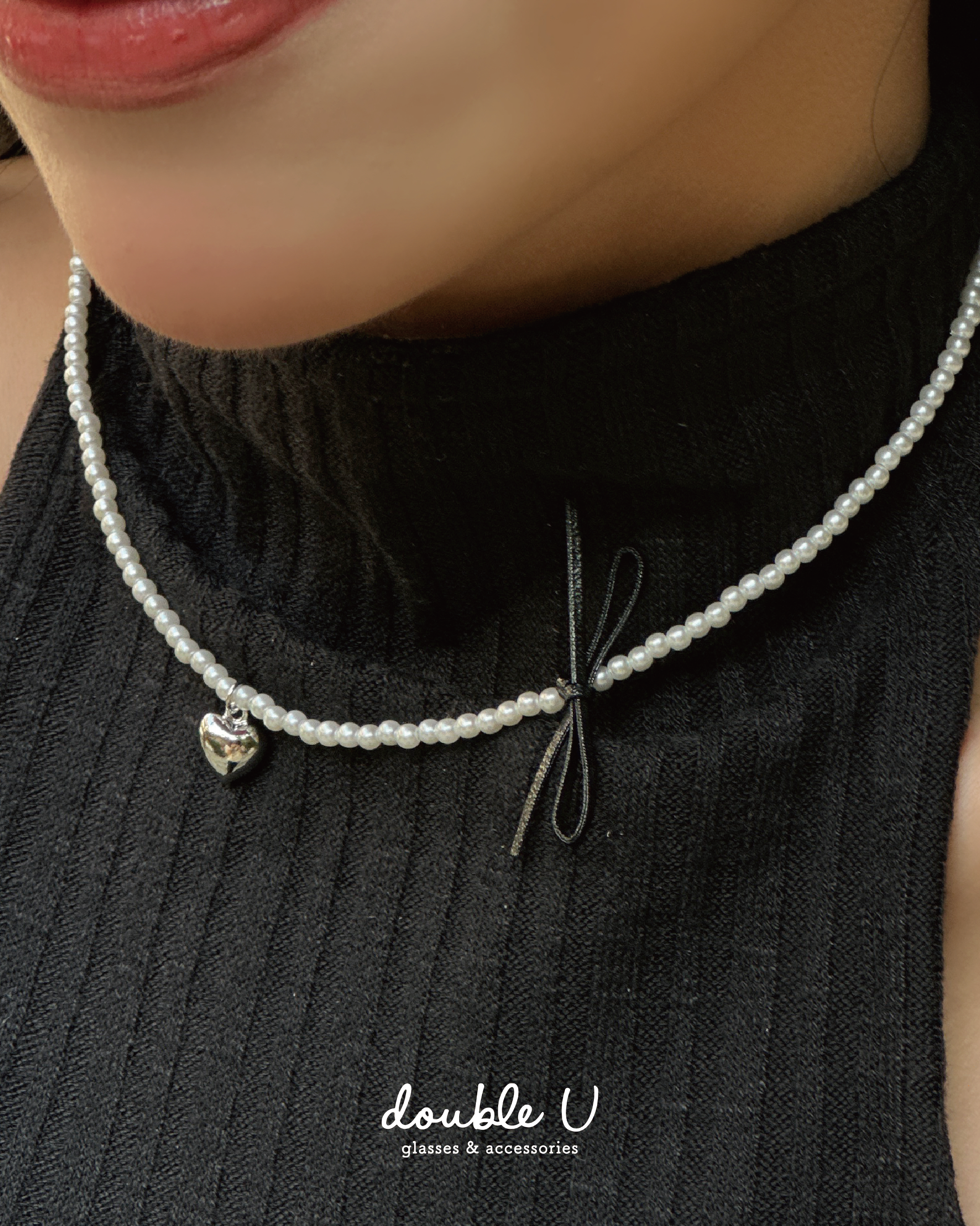 珍珠小愛心蝴蝶結項鍊・Necklace (FNM10114)
