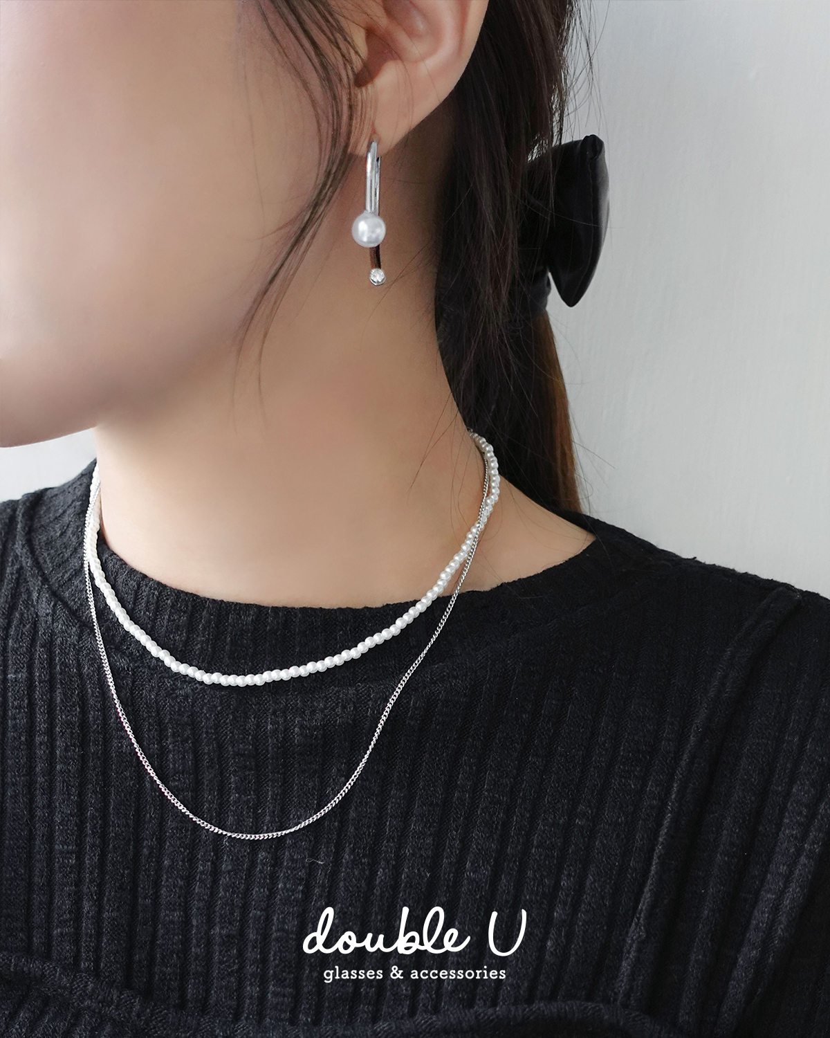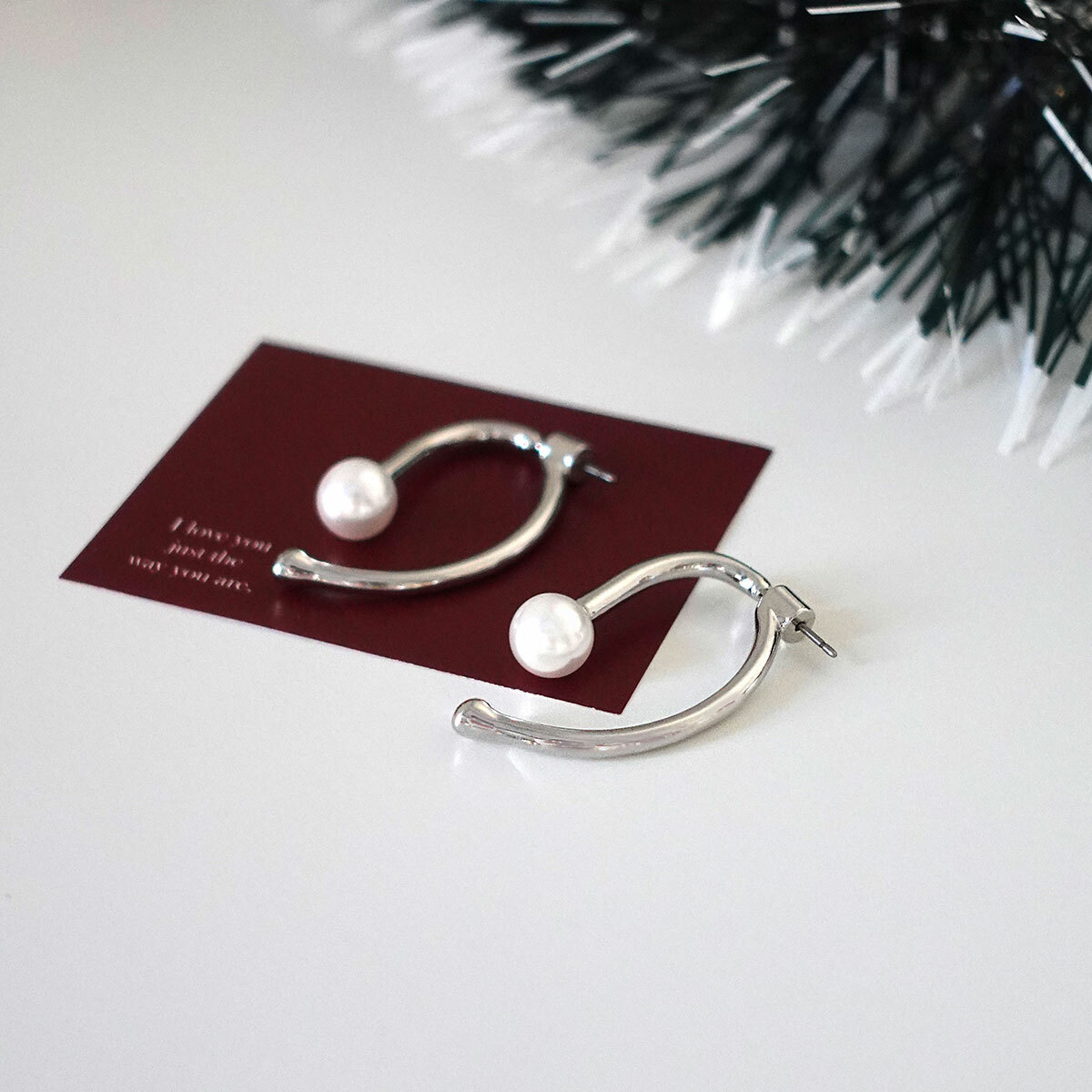 幾何彎月・後勾珍珠耳環・Earring (GEC10435)