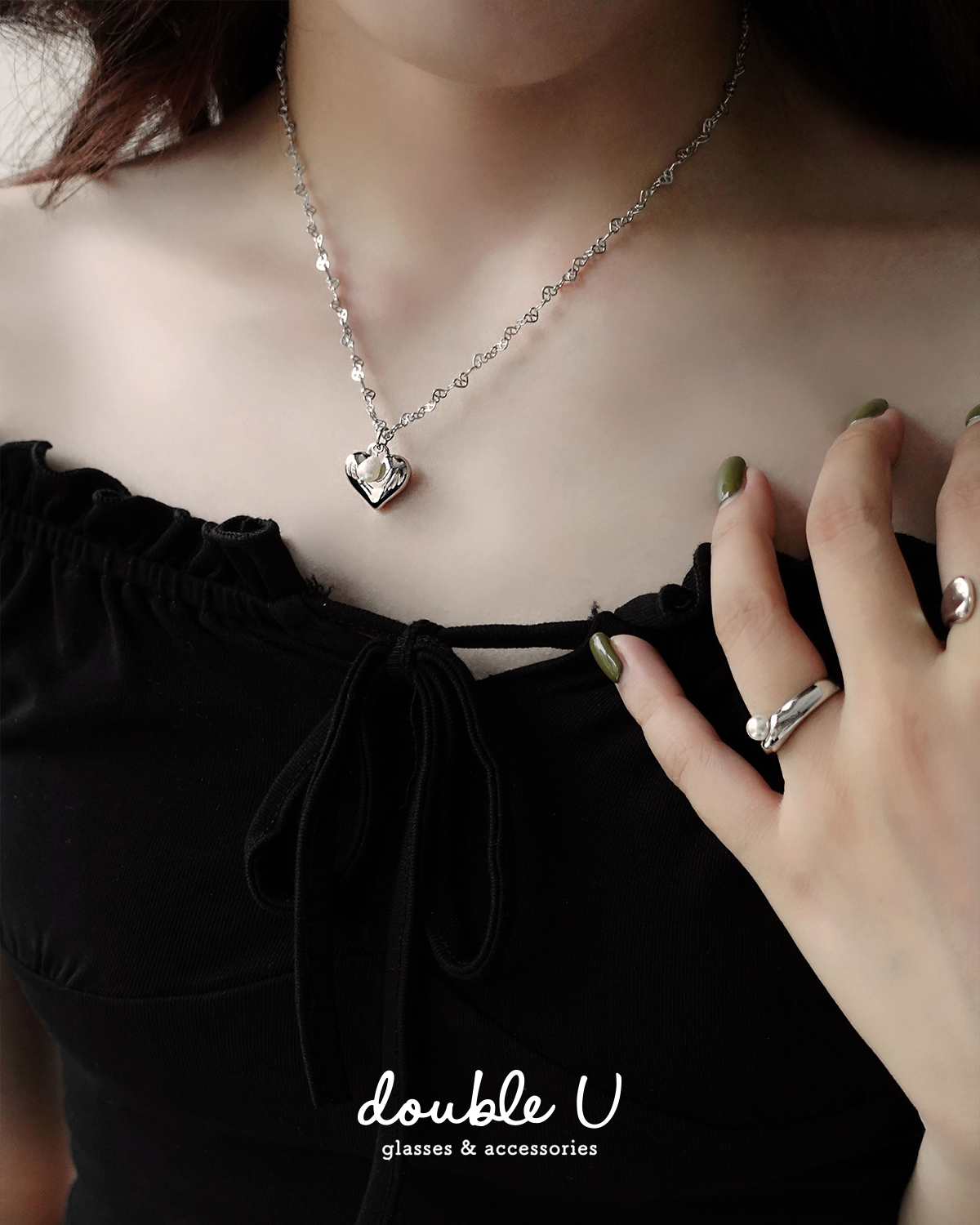 細鍊拼接珍珠愛心項鍊・Necklace (GNC10075)
