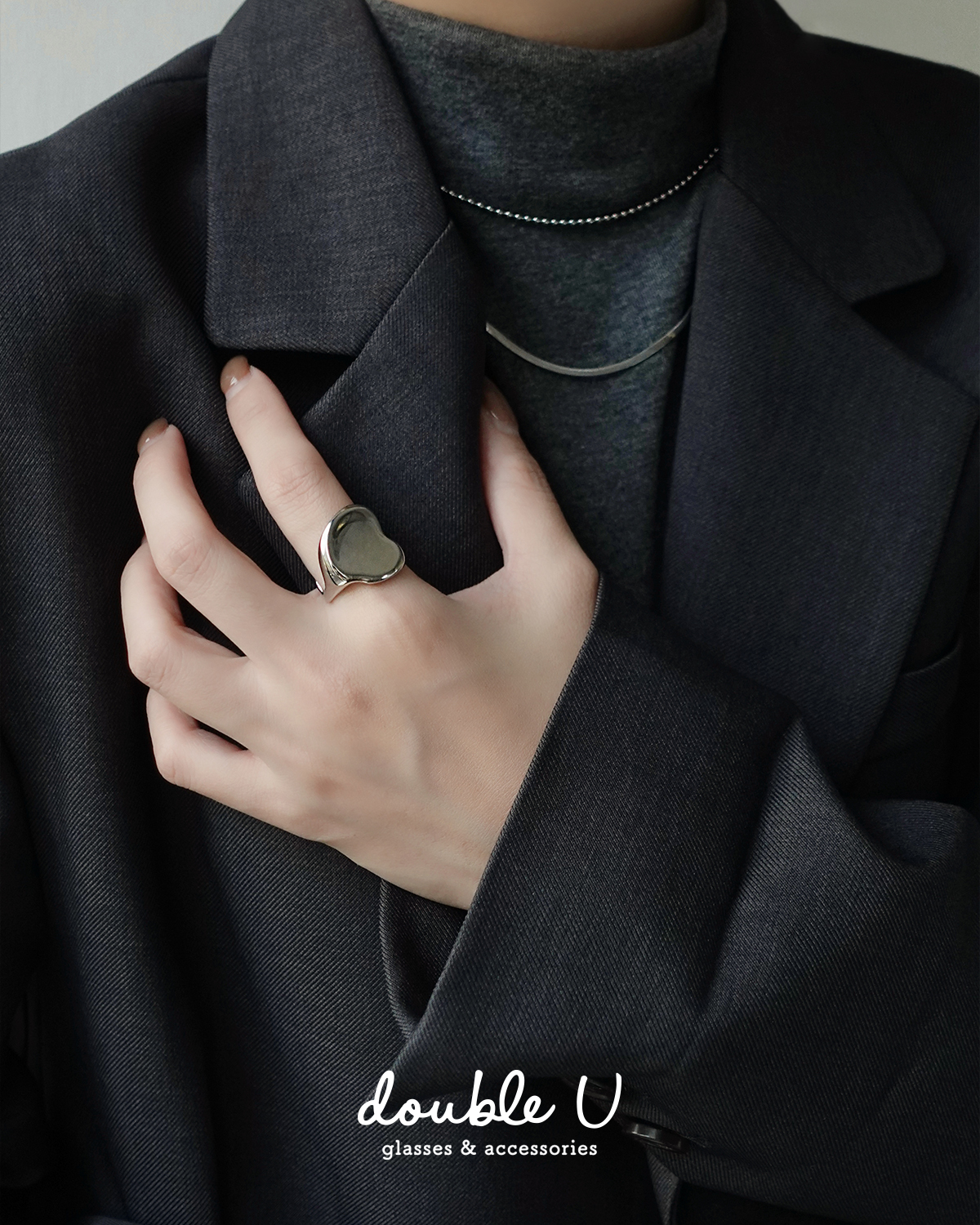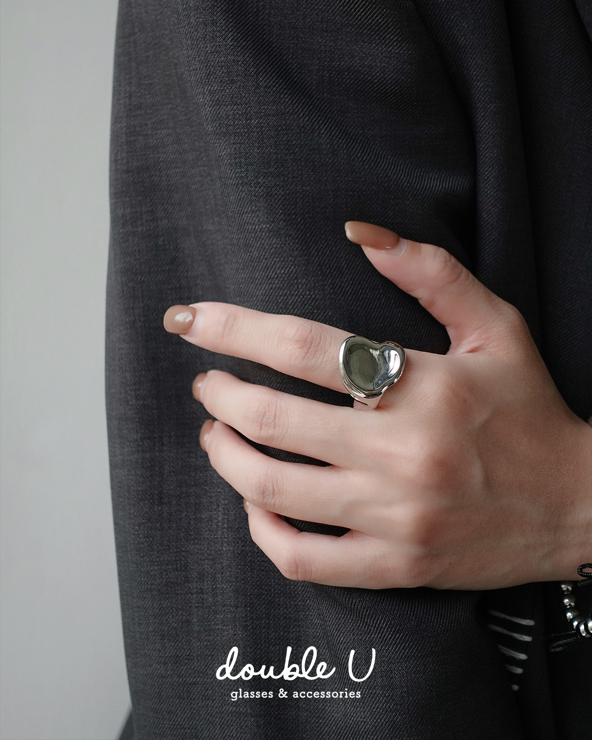 不規則愛心光面・鋼飾戒指 (GRX10342)