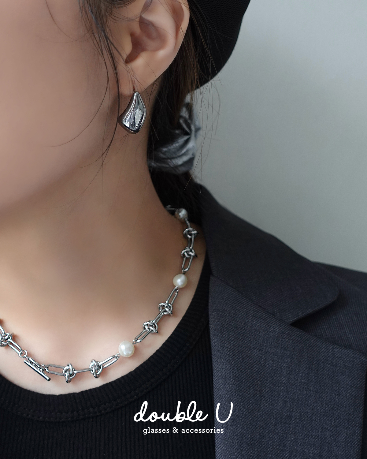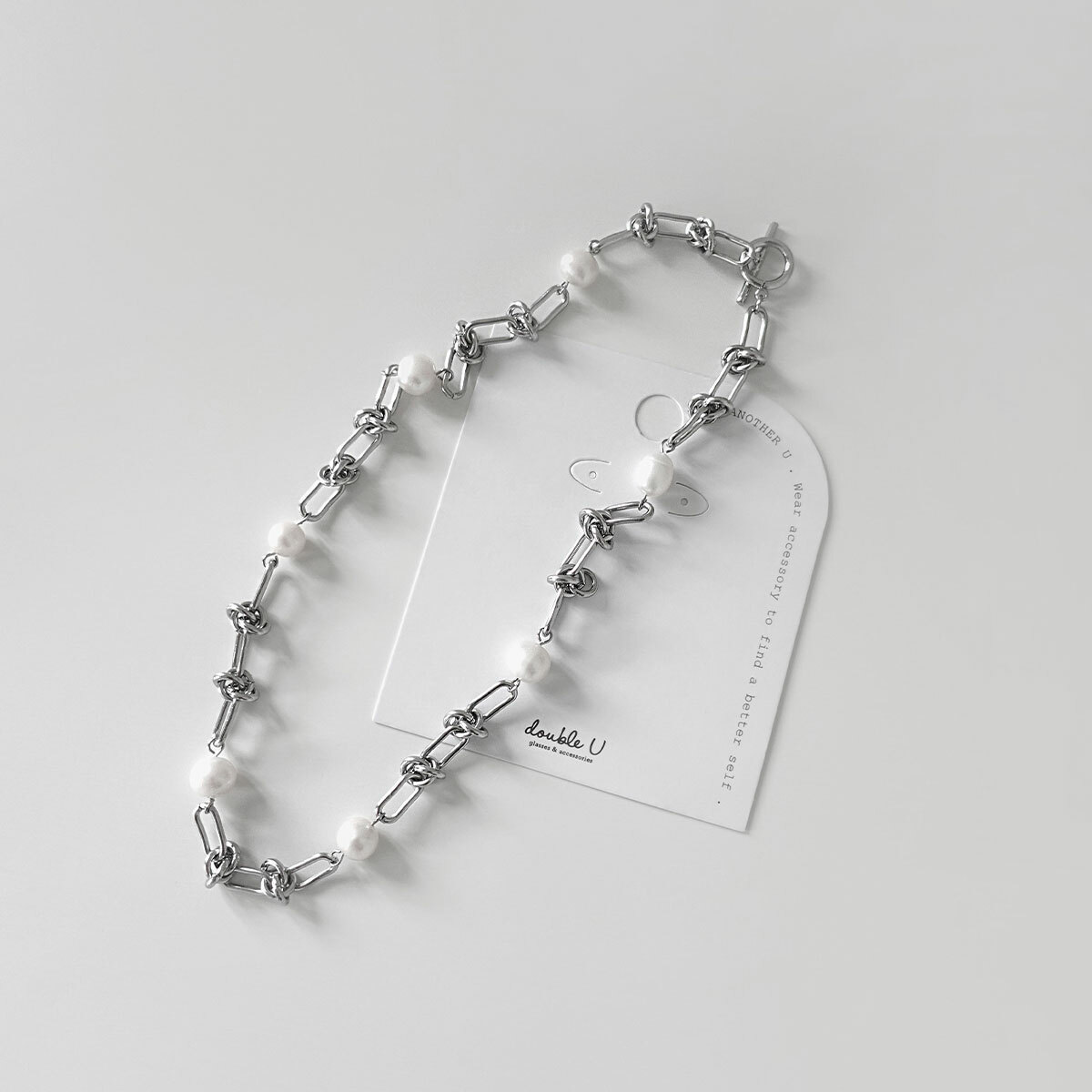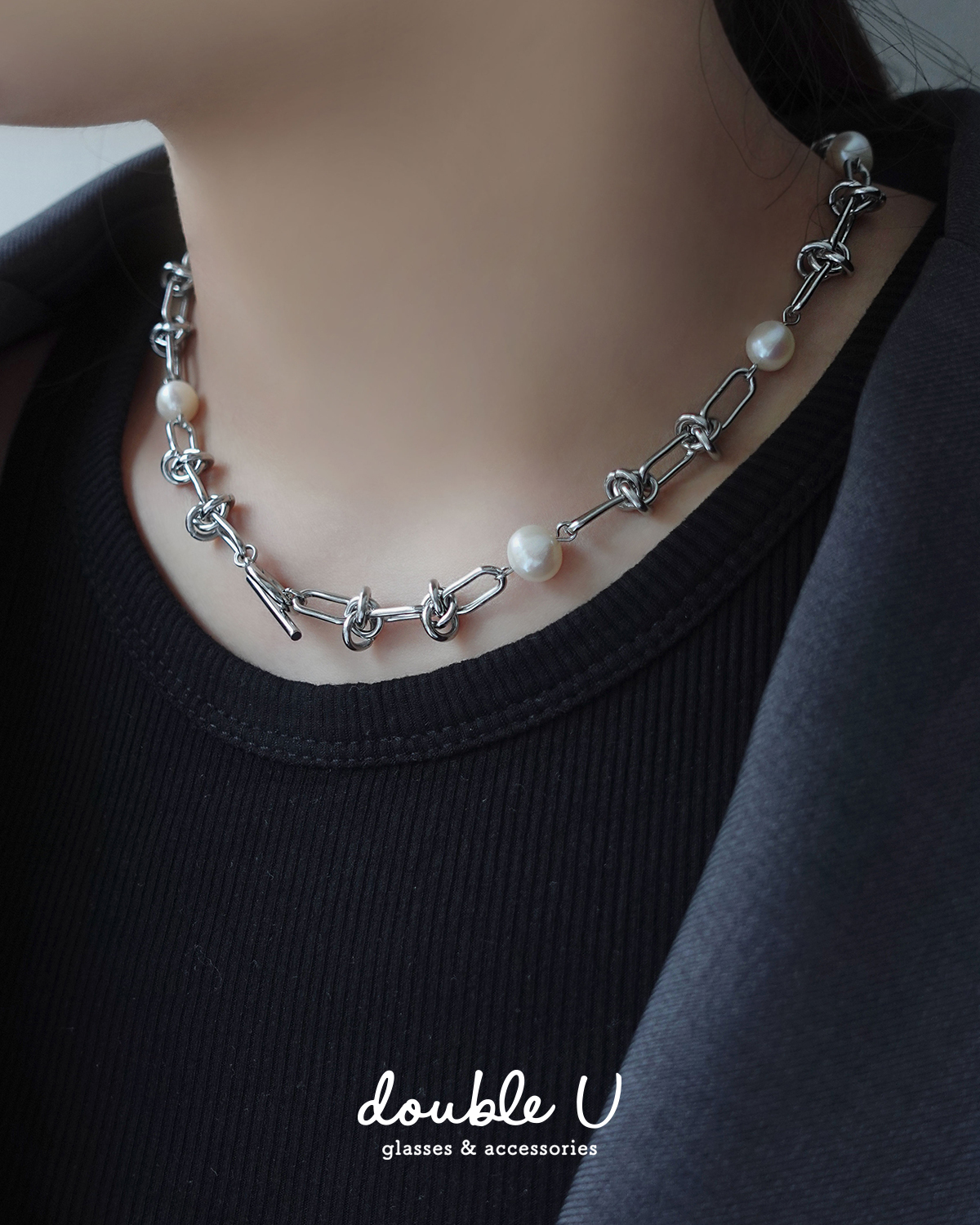 打結鍊條・珍珠OT扣鋼飾項鍊 (INX10158)