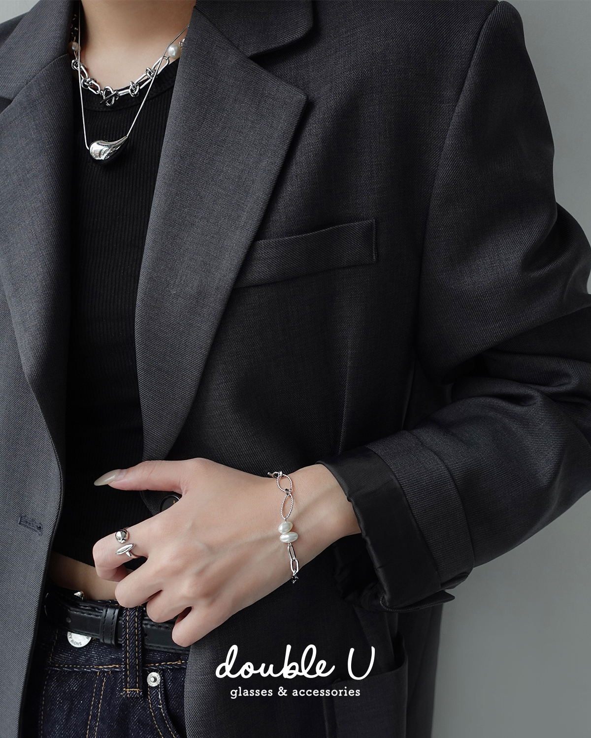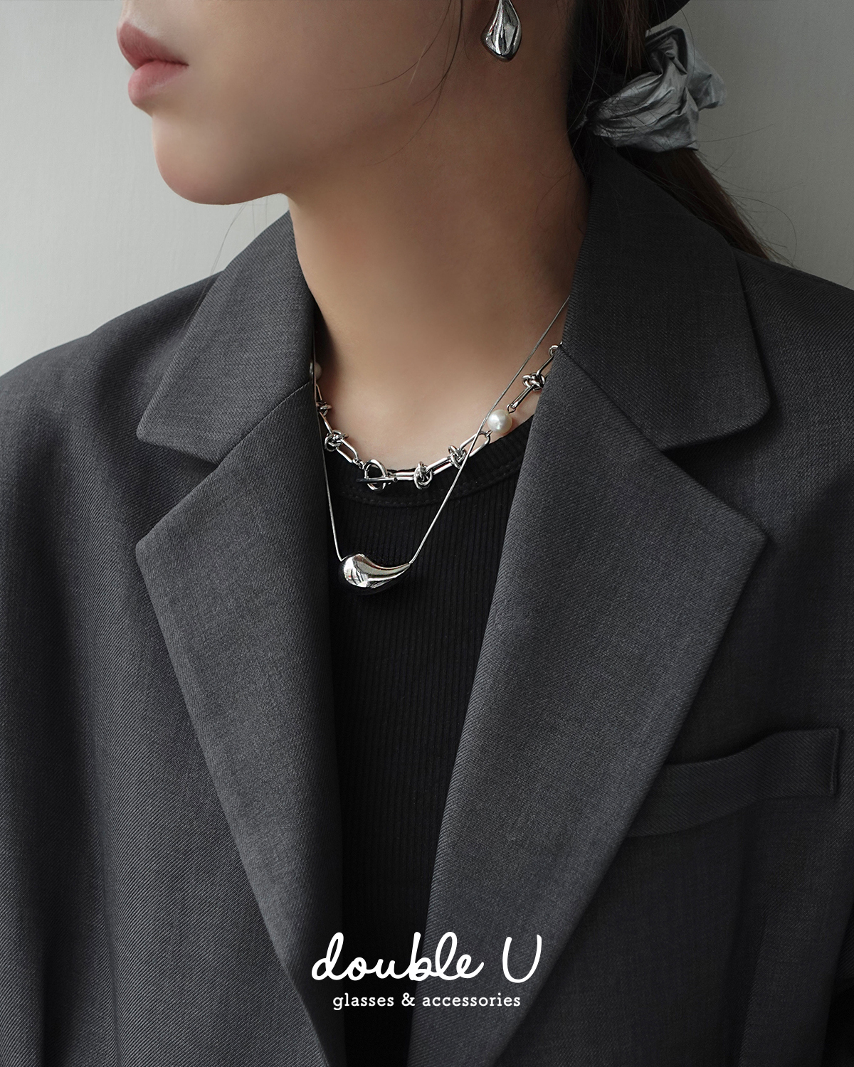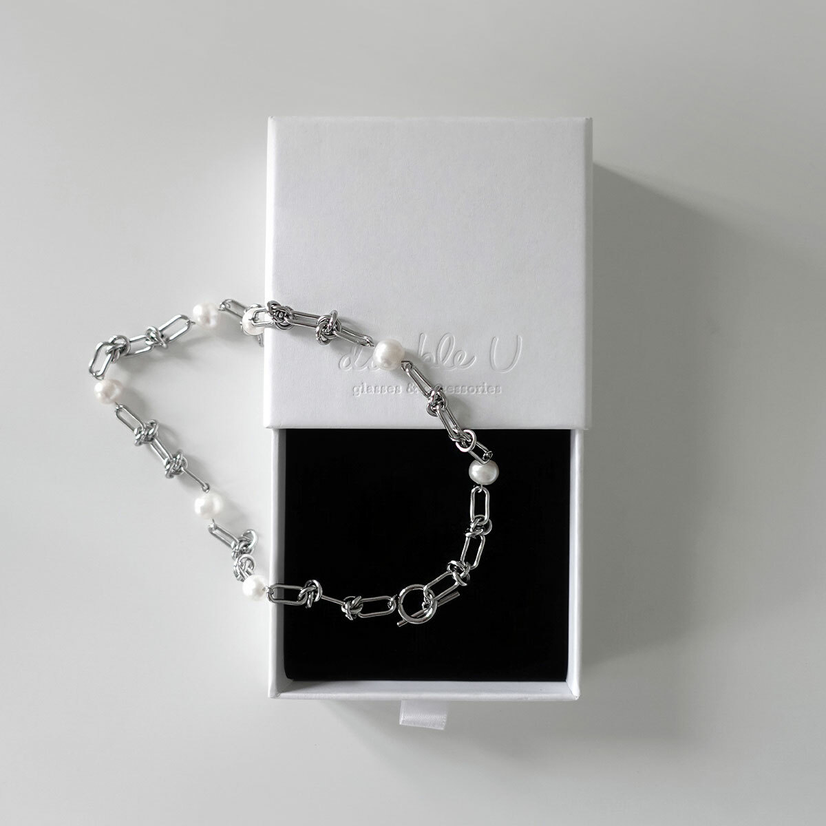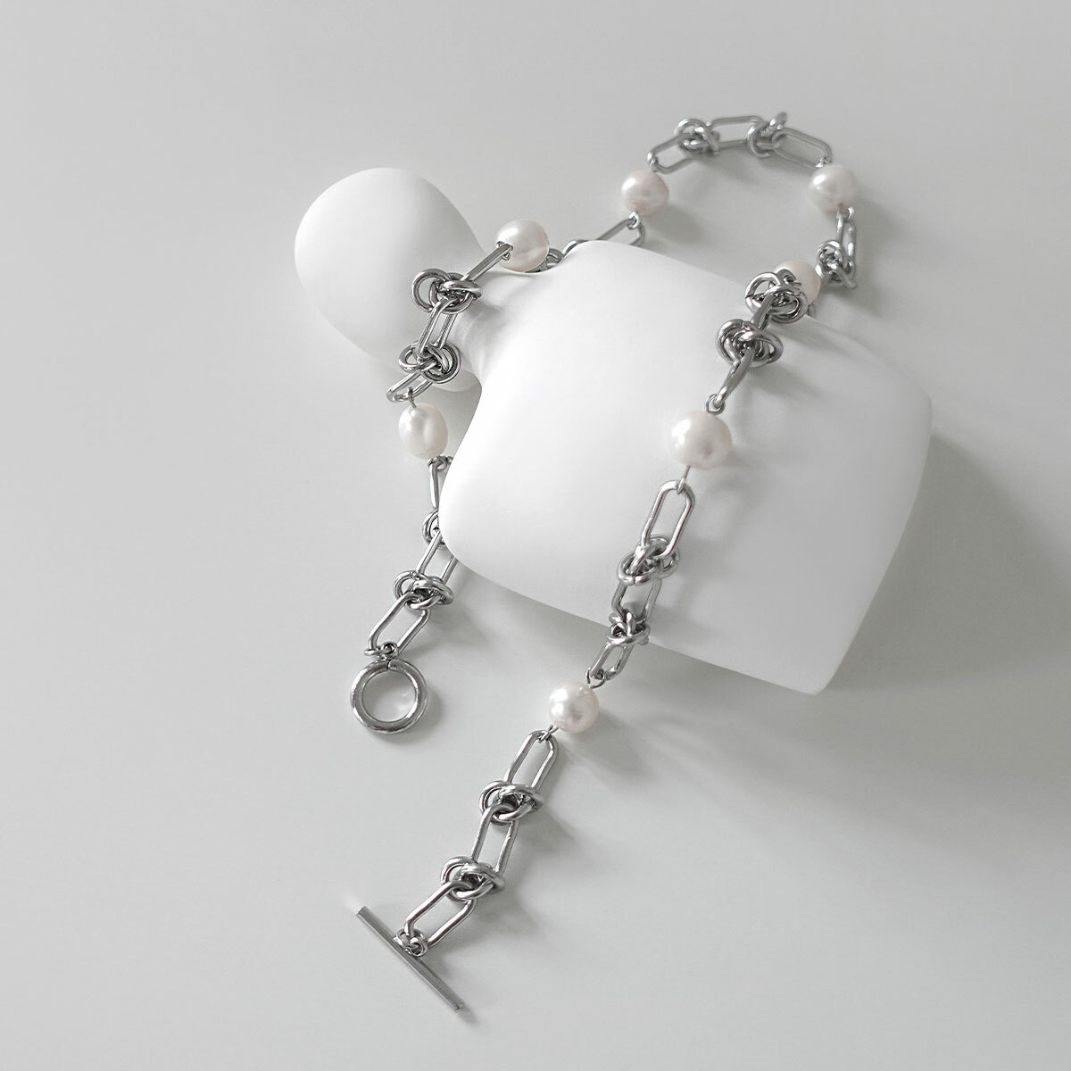 打結鍊條・珍珠OT扣鋼飾項鍊 (INX10158)