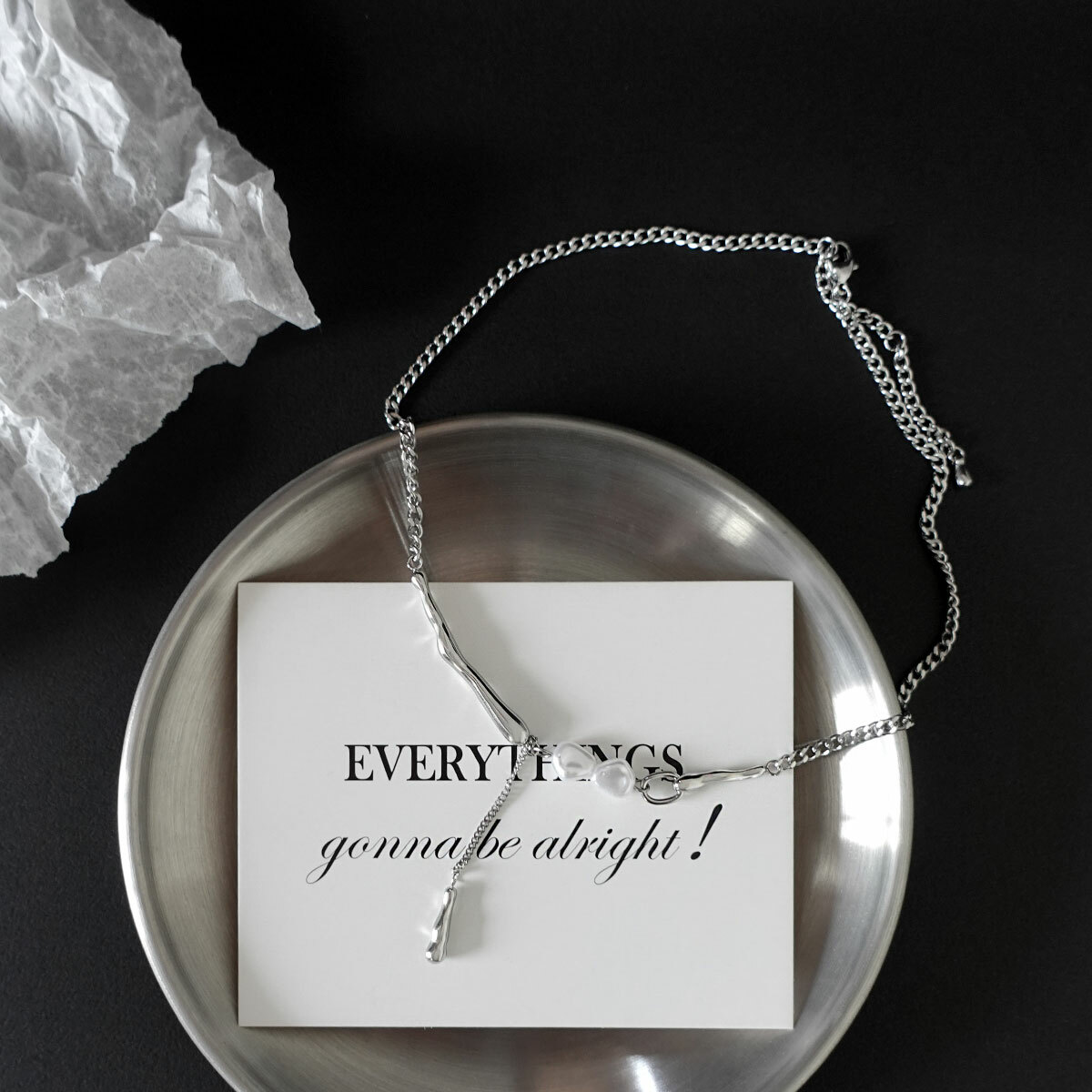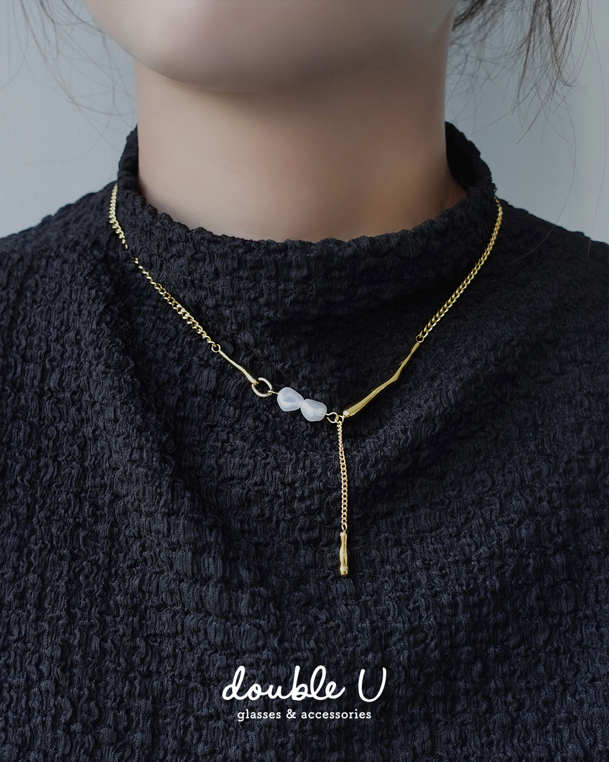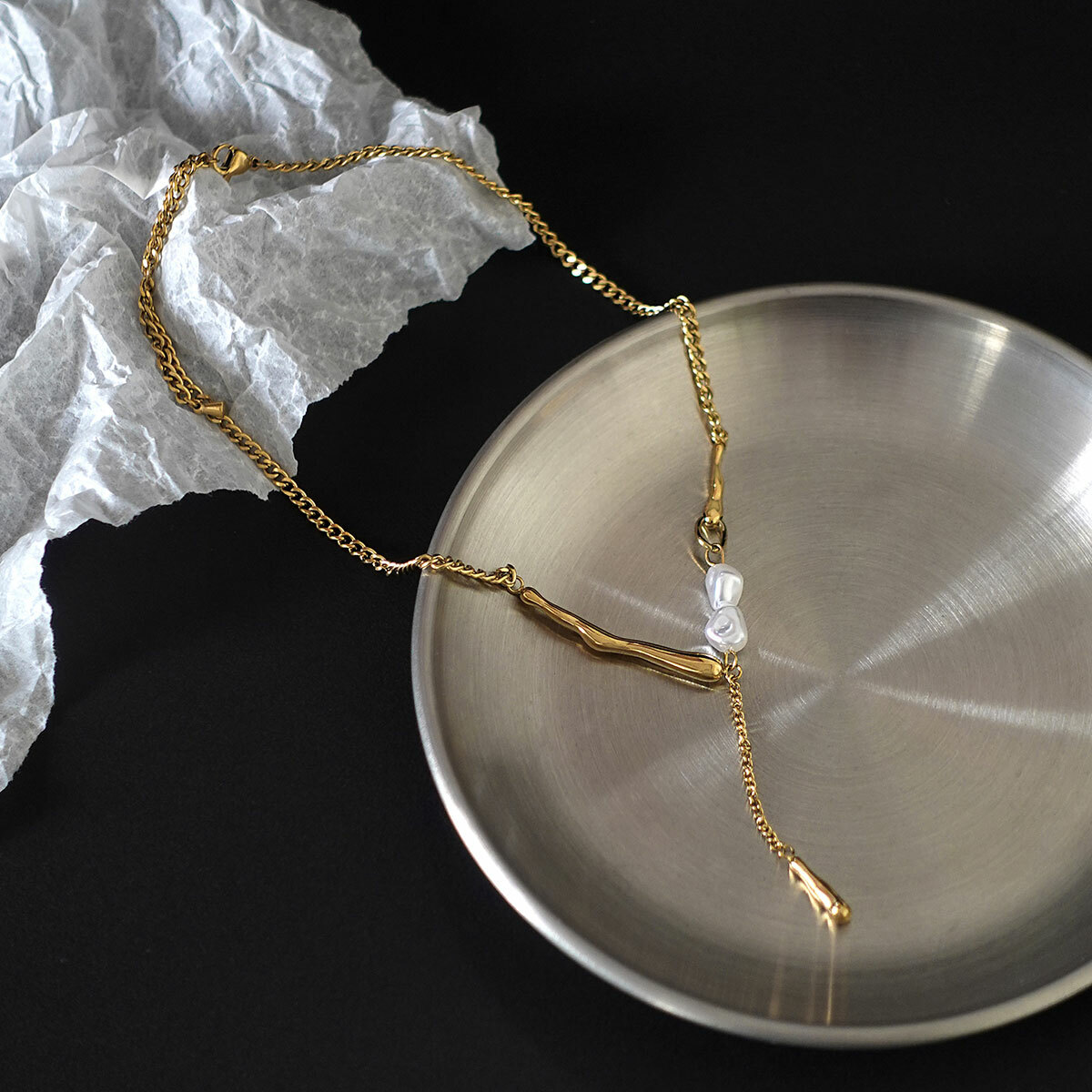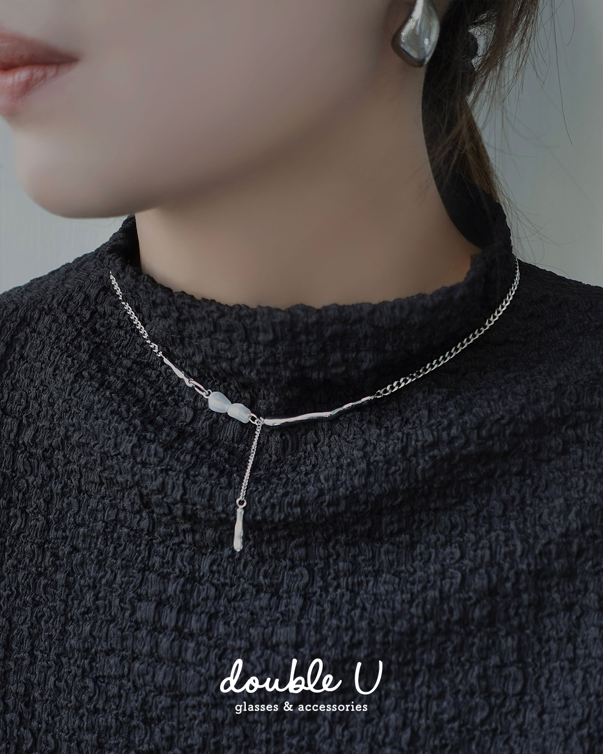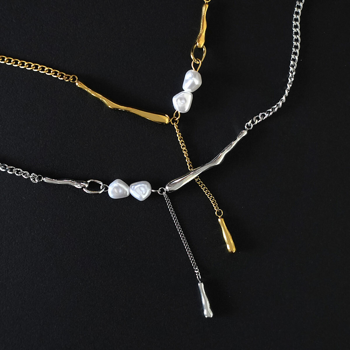流線吊墜珍珠・鋼飾項鍊 (INX10173)