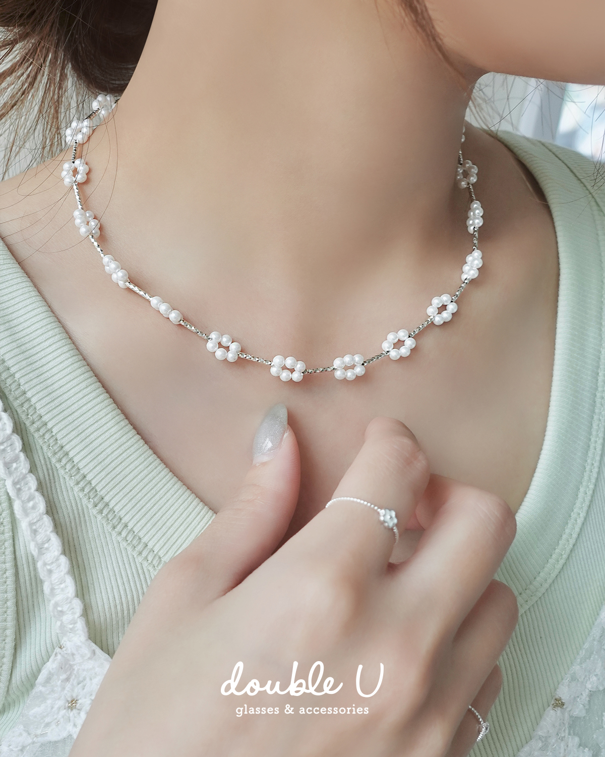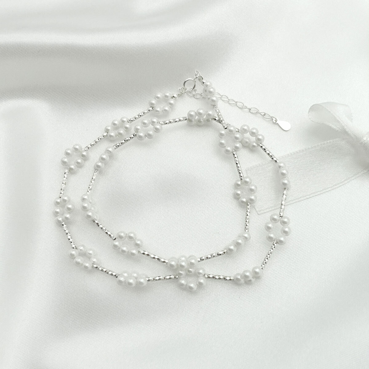 珍珠雲朵花圈・純銀項鍊 (KNS10153)